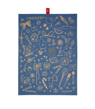Pano de cocina en un suave azul con disenos navidenos 100% algodon - Make A Wish