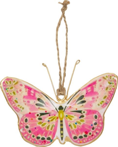 Bello colgante pajarito de metal con cinta de satin