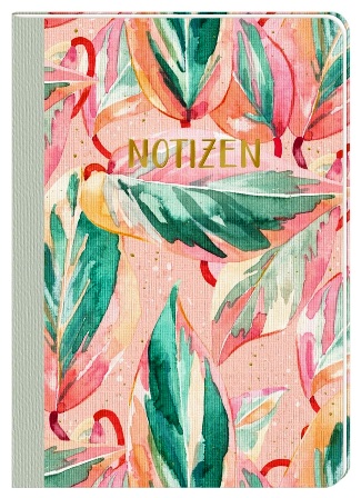 Cuaderno DIN A5 en colores veraniegos - con marcapáginas, portalápices y páginas a rayas